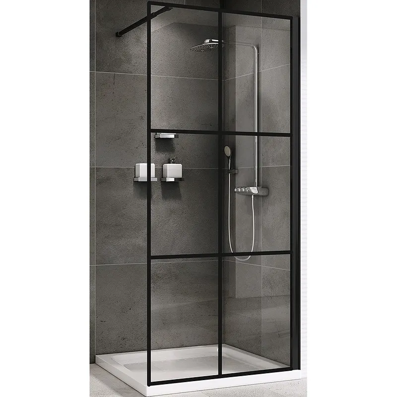 Душевая перегородка Abber Immer Offen 100 AG62100B8.Характеристики: Цвет профиля: черный. Материал профиля: алюминий. Материал полотна: закаленное стекло. Исполнение полотна перегородки: прозрачное стекло толщиной 8 мм. Регулируемая ширина: 1000-1010 мм. Высота: 2000 мм. Ориентация: универсальная. Конструкция: неподвижное стекло с профилем и кронштейном. Регулируемый латунный кронштейн: 660-1200 мм. Монтаж: пристенный, на поддон/на пол. В комплекте поставки: Душевая перегородка. Кронштейн.