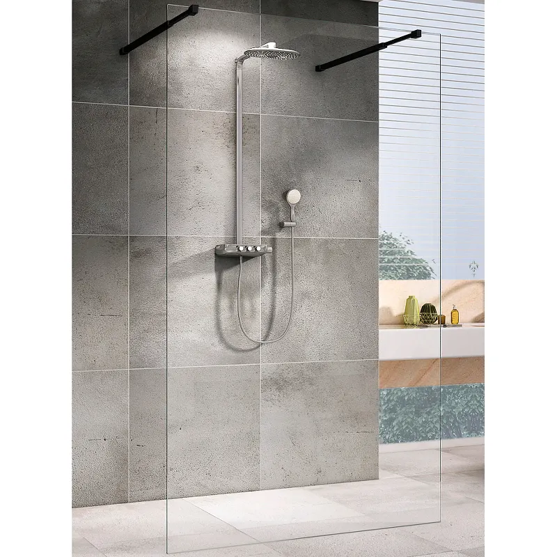 - Прозрачное закалённое стекло: Душевые перегородки из прозрачного стекла визуально увеличивают пространство и обеспечивают безопасность благодаря своей прочности.