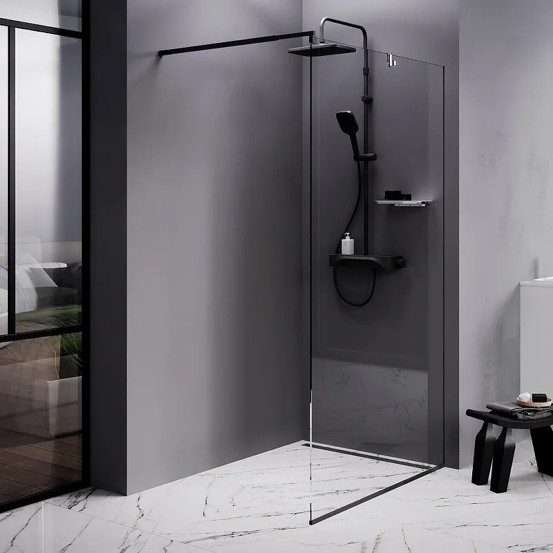 - Эстетичный черный профиль: Душевые перегородки с черным профилем подчеркивают современный дизайн ванной комнаты.