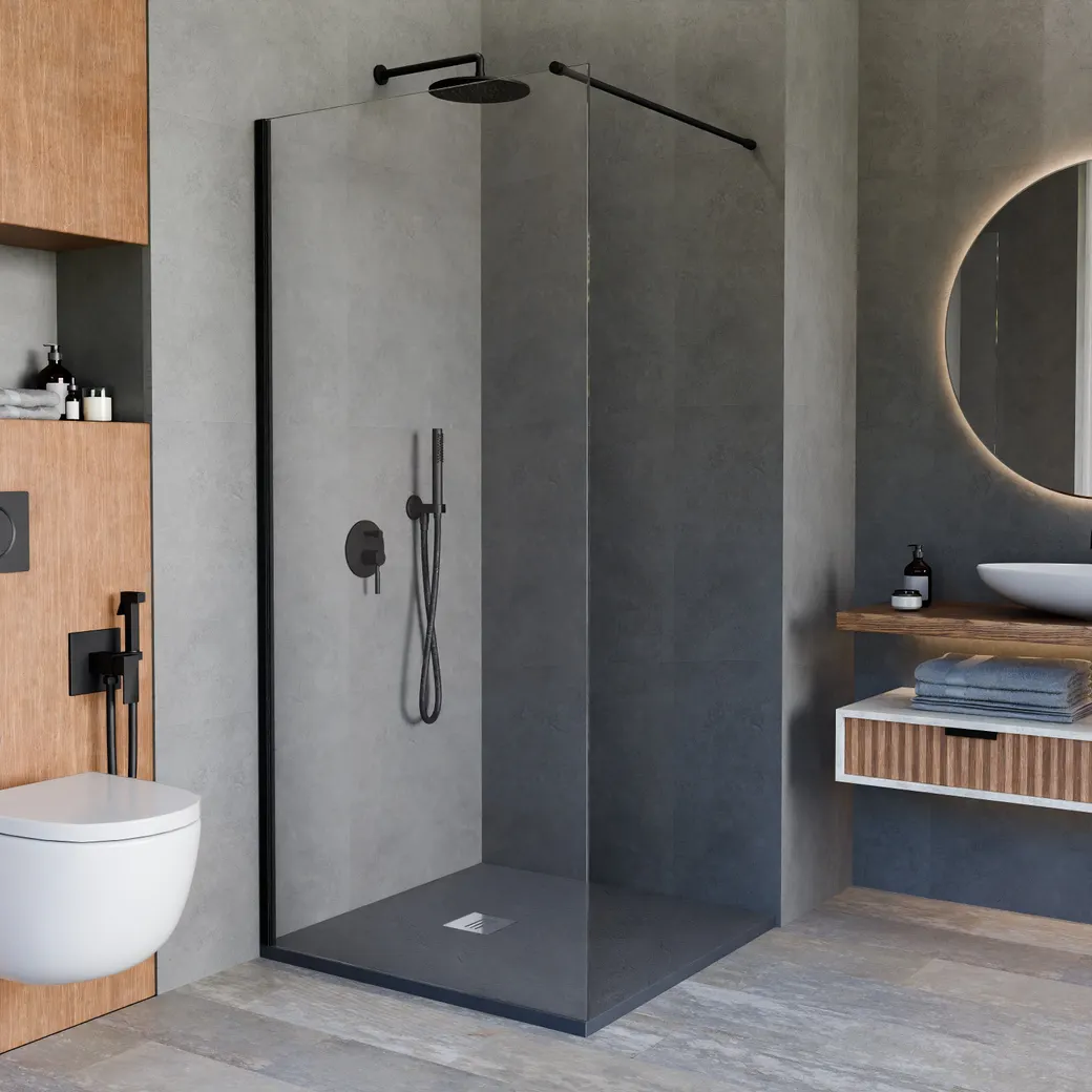 Душевая перегородка INRAIN MONT-010 — это стильное и функциональное решение для ванной комнаты, обеспечивающее комфорт и долговечность. Изготовленная из 8 мм прозрачного закалённого стекла, она гарантирует прочность и стойкость к повреждениям. Благодаря универсальной установке, перегородка идеально подходит для различных типов помещений, создавая современный и светлый интерьер.