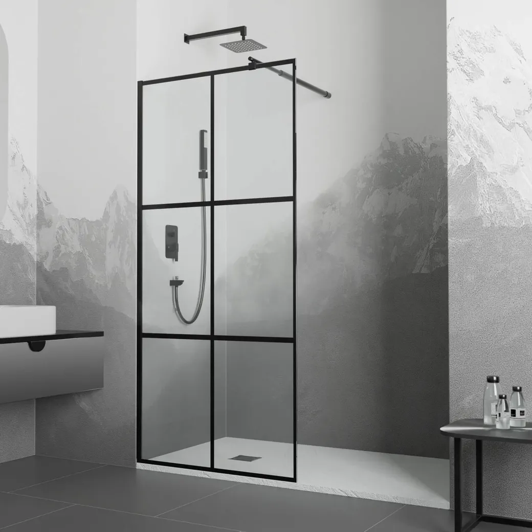 - Универсальность: Черный анодированный алюминиевый профиль легко вписывается в различные стилистические решения ванной комнаты.