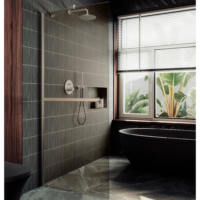 Душевая перегородка Maybah Glass MGD-727-5ш 790x1950 в широком профиле.Характеристики: Цвет профиля: хром матовый. Материал профиля: анодированный алюминий. Вид профиля: широкий. Исполнение полотна перегородки: бронзовое закаленное стекло, толщиной 8 мм. Размеры (ШхВ): 790х1950 мм. Конструкция перегородки: неподвижная. Ориентация: универсальная. Полотенцедержатель. Установка: на поддон, на пол. Монтаж: пристенный. В комплекте поставки: Закаленное стекло, цвет Бронза, толщина 8 мм 1950х790 мм - 1 шт. Профиль П-образный, цвет Хром матовый - 1 шт. Штанга стена-стекло - 1 шт. Полотенцедержатель - 1 шт. Комплект крепежа - 1 шт. Уплотнитель - 2 шт. Инструкция по монтажу - 1 шт.
