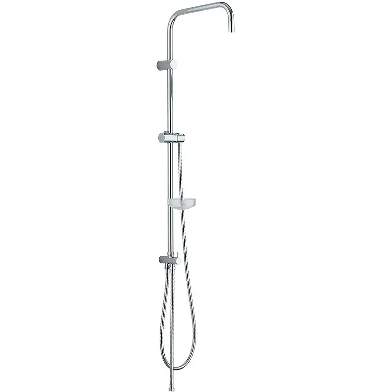 Душевая штанга Agger Abar с держателем для лейки и душевым шлангом.Характеристики: Цвет: хром. Материал душевой штанги: латунь. Душевой шланг: 150 см, пластиковый в металлической оплетке, с защитой от перекручивания. Держатель ручного душа, регулируемый по высоте и наклону. Держатель штанги с регулировкой по высоте и возможностью установки в старые отверстия. Быстросъемная пластиковая мыльница. В комплекте поставки: Душевая штанга. Шланг для душа. Настенный держатель штанги. Держатель лейки. Переключатель потоков. Мыльница. Комплект креплений.