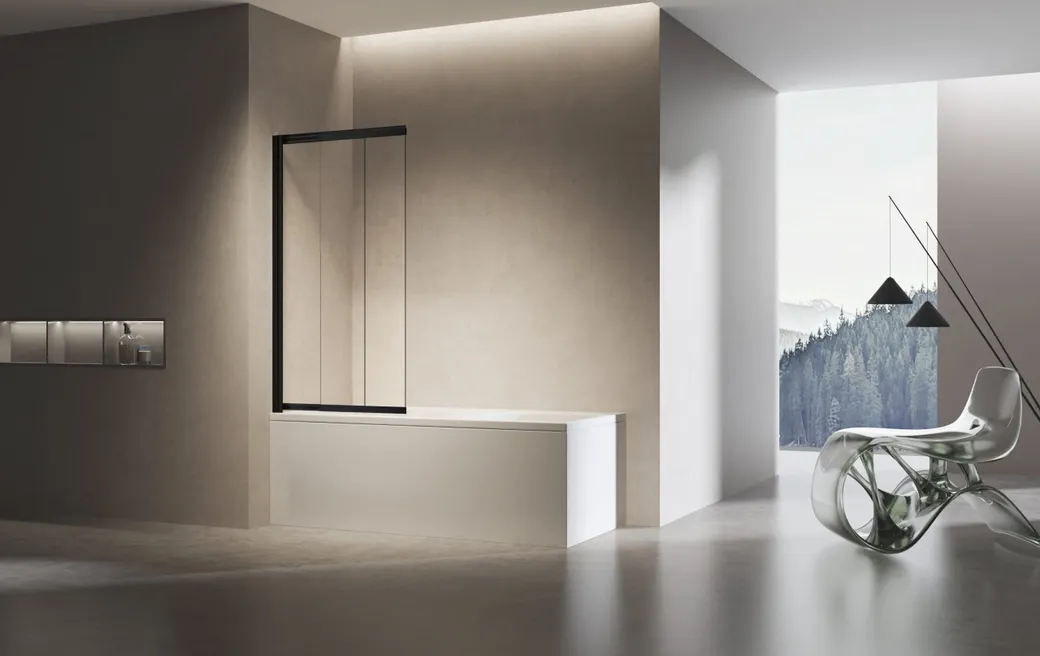 Душевая шторка на ванну , 900*1400, черный, стекло прозрачное, левая арт-VSB-6E900CLB-L
