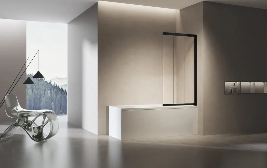 Душевая шторка на ванну , 900*1400, черный, стекло прозрачное, правая арт-VSB-6E900CLB-R