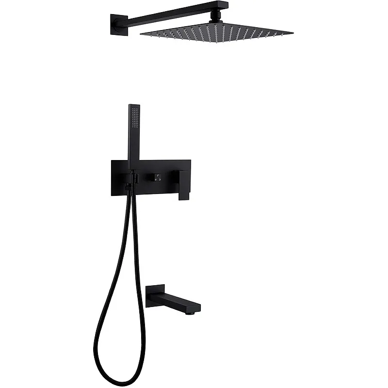 - Элегантный дизайн: Черный матовый цвет и прямоугольная форма верхнего душа добавляют изысканности.