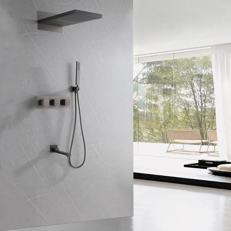 - Душевая система с термостатом: Обеспечивает стабильную температуру воды для максимального комфорта.