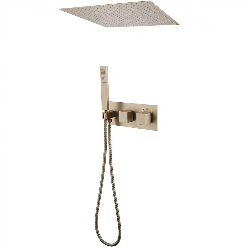 Душевая система Abber Daheim AF8255G с термостатом – это идеальное решение для создания стильного и функционального пространства в вашей ванной комнате. Встраиваемая душевая система с термостатом обеспечивает комфортное управление температурой воды, а матовое золотое покрытие придаёт интерьеру элегантный и современный вид.