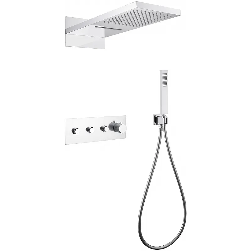 - Комплектность: Все необходимое для установки, включая смеситель, верхний и ручной душ, и другие элементы, входит в комплект.