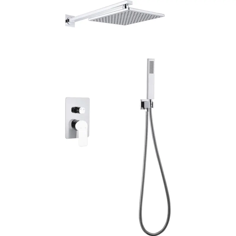 - Комплексное решение: В комплект входят все необходимые элементы, включая смеситель, кронштейн, верхний и ручной душ, что упрощает установку.
