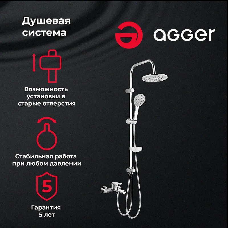 Преимущества душевой системы Agger Glorious A1293500 Хром