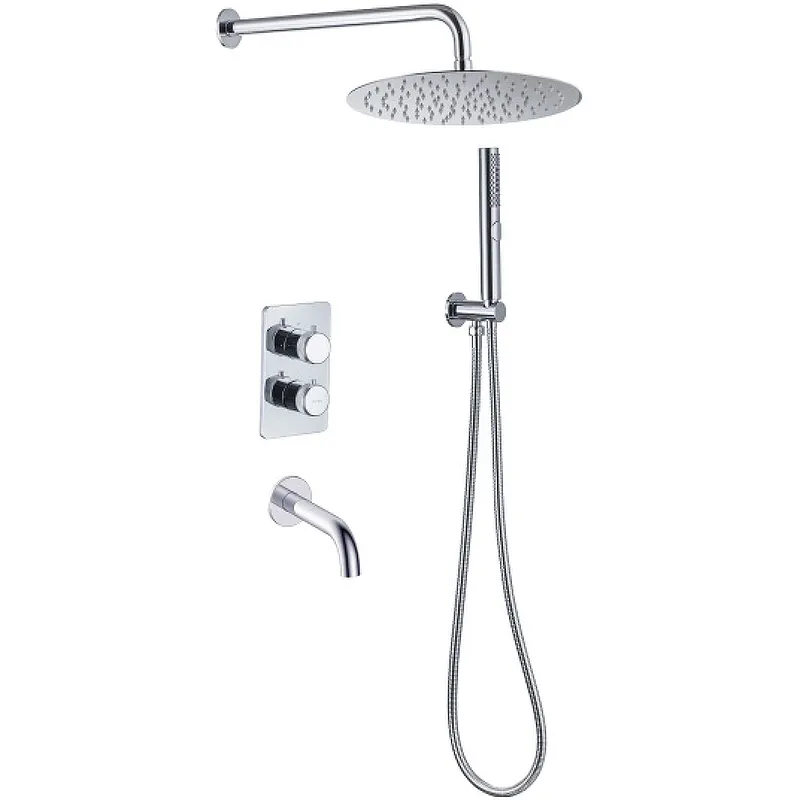 Душевая система Allen Brau Priority 5.31014-00 с термостатом.Характеристики: Цвет: хром. Материал: латунь. Монтаж: встраиваемый. Тип управления: термостат. С фиксированным изливом. Количество монтажных отверстий: 4 шт. Термостатический картридж. Стандарт подводки: G 1/2. Душевая лейка с 1 режимом. Душевой шланг длиной 150 см. Верхний душ: 30х30 см. В комплекте поставки: Смеситель (внешняя и внутренняя части). Излив. Верхний душ. Держатель для верхнего душа. Ручной душ. Держатель для ручного душа. Шланг для душа.