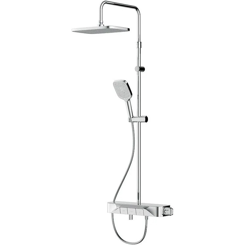 Душевая система AM.PM Func F078F300 с термостатом.Характеристики: Цвет: хром. Материал: латунь, нержавеющая сталь, пластик. Управление: термостат. Механизм: с термоэлементом. Стандарт подводки: G 1/2. Излив: фиксированный. Аэратор: с шарнирным соединением. Тип подводки: жесткая. Тип переключателя: кнопочный. Размер верхнего душа (ШхД): 300х210 мм. Размер ручного душа: 103х130 мм. Переключатель режимов ручного душа: Simple Switch Push/нажимной. Количество режимов струи ручного душа: 3 (Spray, EnerJet, Spray + Massage). Монолитный душевой шланг длиной 1750 мм. Защита от перекручивания Twistless. Высота душевой штанги: 1030-1460 мм. Функция очистки резиновых форсунок RubClean. Обратные клапаны. Стопор безопасности на 38 градусов. Эксцентрики. Совместимость с проточным водонагревателем. Количество монтажных отверстий: 3. Монтаж: на стену. В комплекте поставки: Смеситель для ванны. Верхний душ. Ручной душ. Держатель ручного душа. Телескопическая душевая штанга. Душевой шланг. Комплект крепежа. Инструкция.
