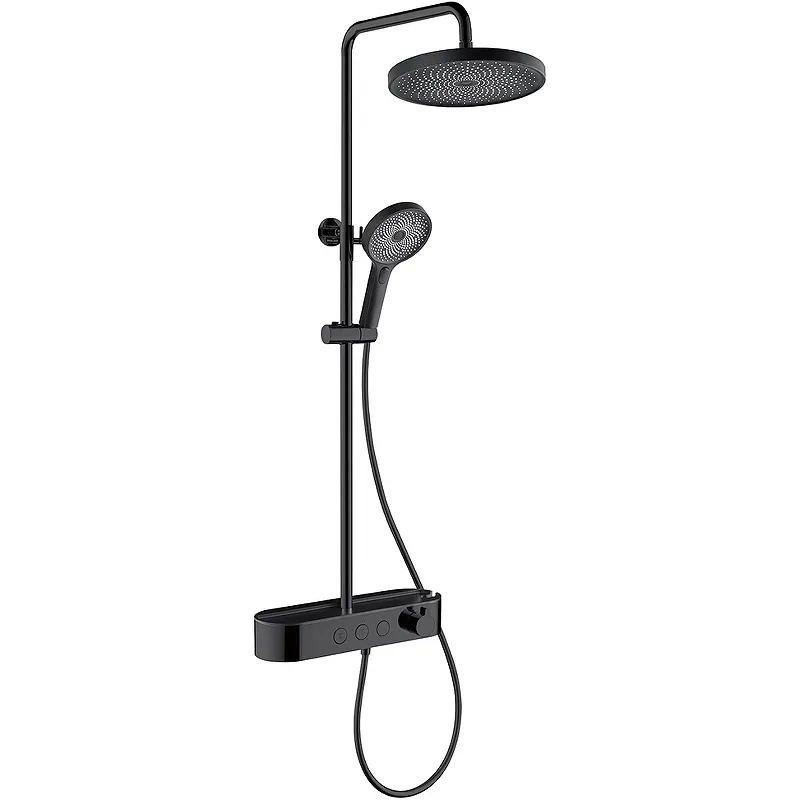 Душевая система AQUAme AQM8009B Черная — это идеальное решение для создания современного и стильного интерьера ванной комнаты. Изготовленная из высококачественной латуни, данная душевая система сочетает в себе элегантность и функциональность. Круглый верхний душ диаметром 260 мм обеспечивает мягкое и равномерное распределение воды, а ручной душ с тремя режимами струи позволяет выбрать оптимальный вариант для комфортного принятия водных процедур.