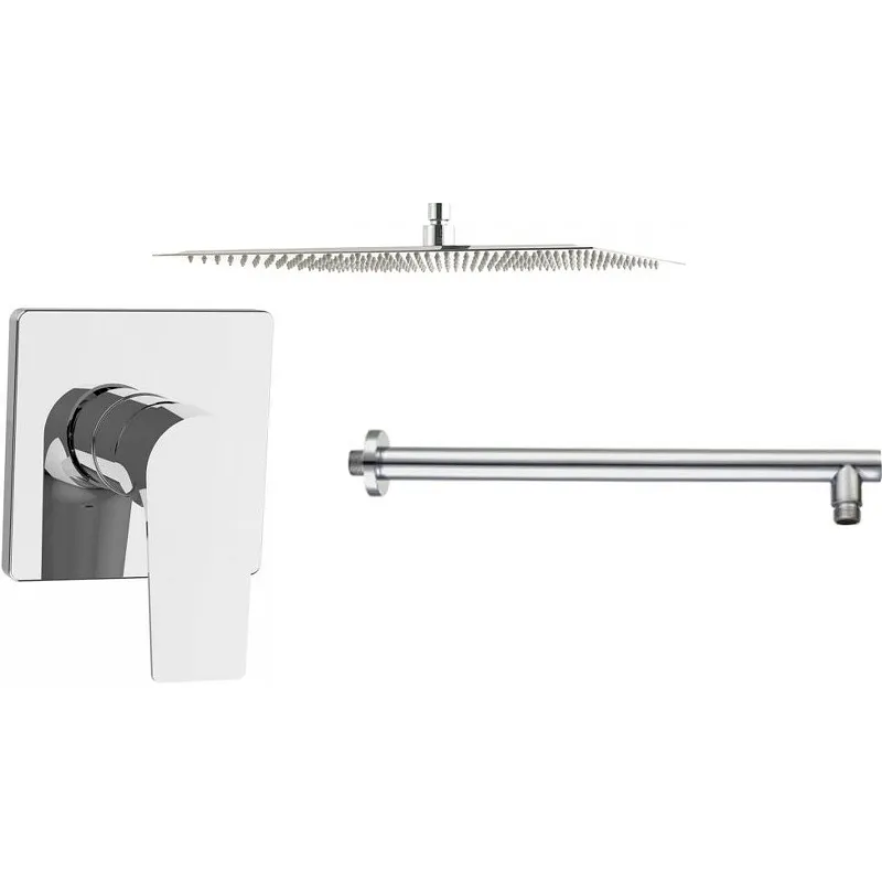 - Квадратный верхний душ для равномерного распределения воды: Прямоугольная форма верхнего душа 400х20х400 мм обеспечивает равномерное распределение воды, создавая приятные ощущения при принятии душа.