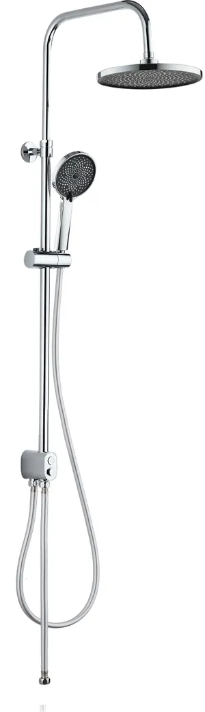 Душевая система ESKO ST1350N — это идеальное решение для современной ванной комнаты. Она оснащена выдвижной телескопической стойкой, выполненной из нержавеющей стали с хромированным покрытием. Высота функциональной стойки варьируется от 1000 мм до 1300 мм, что обеспечивает комфортное использование для всех членов семьи. Диаметр верхнего душа составляет 230 мм, а ручной лейки — 120 мм, предлагая три различных режима струи для максимального удобства.