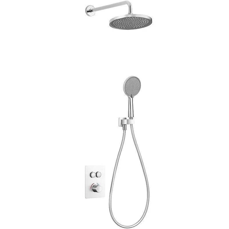 Душевая система beWash BV0ITSS226 с термостатом.Характеристики: Цвет: хром. Материал: латунь. Антиизвестковое покрытие. Управление: термостат. Механизм: термостатический картридж. Легкое очищение от налета. Антибактериальная защита. Регулировка напора. Девиатор. Самоочищающееся покрытие. Система против известковых отложений. Защита шланга от перекручивания. Исполнение шланга: пластиковый. Диаметр верхнего душа: 240 мм. Материал лейки: пластик. Стандарт подводки: 1/2. Количество монтажных отверстий: 3. Монтаж: встраиваемый. В комплекте поставки: Смеситель (внешняя и внутренняя части). Верхний (тропический) душ. Шланг душевой. Лейка душевая. Настенный держатель лейки.
