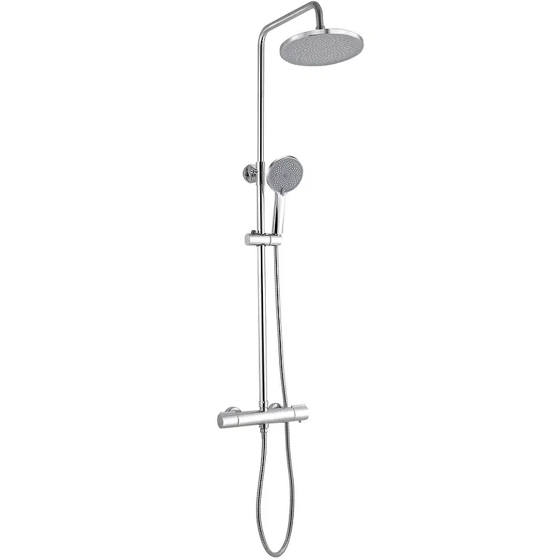 Душевая система beWash BV0TMSS6120 с термостатом.Характеристики: Цвет: хром. Материал: латунь. Антиизвестковое покрытие. Управление: термостат. Механизм: термостатический картридж. Легкое очищение от налета. Антибактериальная защита. Регулировка напора. Девиатор. Система против известковых отложений. Защита шланга от перекручивания. Исполнение шланга: пластиковый. Душевая штанга регулируется по высоте: 830-1190 мм. Верхний душ диаметром 230 мм. Материал лейки: пластик. Стандарт подводки: 1/2. Количество монтажных отверстий: 3. Монтаж: настенный. В комплекте поставки: Смеситель. Душевая штанга. Верхний (тропический) душ. Шланг душевой. Лейка душевая. Держатель душевой лейки.