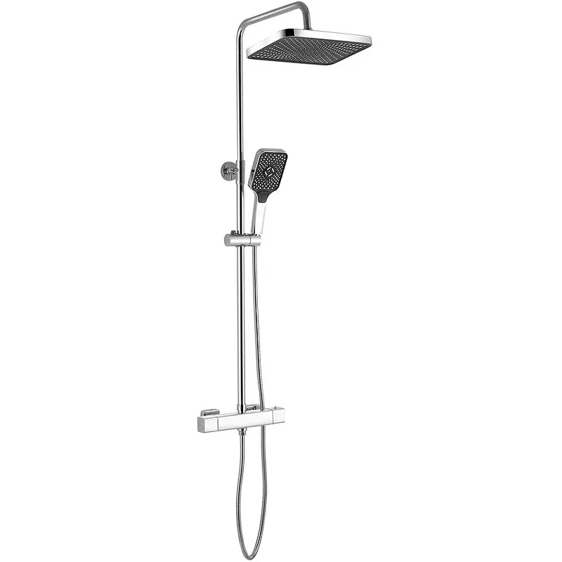 Душевая система beWash BV0TMSS6121 с термостатом.Характеристики: Цвет: хром. Материал: латунь. Антиизвестковое покрытие. Управление: термостат. Механизм: термостатический картридж. Легкое очищение от налета. Антибактериальная защита. Регулировка напора. Девиатор. Система против известковых отложений. Защита шланга от перекручивания. Исполнение шланга: пластиковый. Душевая штанга регулируется по высоте: 830-1190 мм. Размер верхнего душа: 300х200 мм. Материал лейки: пластик. Стандарт подводки: 1/2. Количество монтажных отверстий: 3. Монтаж: настенный. В комплекте поставки: Смеситель. Душевая штанга. Верхний (тропический) душ. Шланг душевой. Лейка душевая. Держатель душевой лейки.