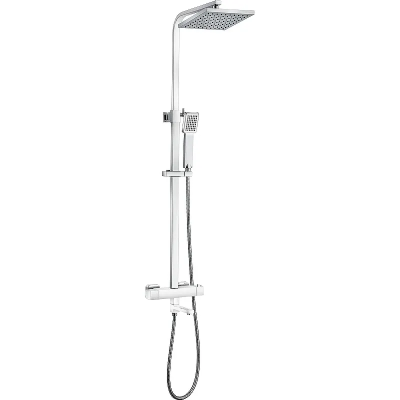 Душевая система beWash BV0TMSS6620 с термостатом.Характеристики: Цвет: хром. Материал: латунь. Антиизвестковое покрытие. Управление: термостат. Механизм: термостатический картридж. Легкое очищение от налета. Антибактериальная защита. Регулировка напора. Девиатор. Система против известковых отложений. Защита шланга от перекручивания. Исполнение шланга: пластиковый. Душевая штанга регулируется по высоте: 790-1190 мм. Размер верхнего душа: 200х200 мм. Материал лейки: пластик. Стандарт подводки: 1/2. Количество монтажных отверстий: 3. Монтаж: настенный. В комплекте поставки: Смеситель. Излив. Душевая штанга. Верхний (тропический) душ. Шланг душевой. Лейка душевая. Держатель душевой лейки.