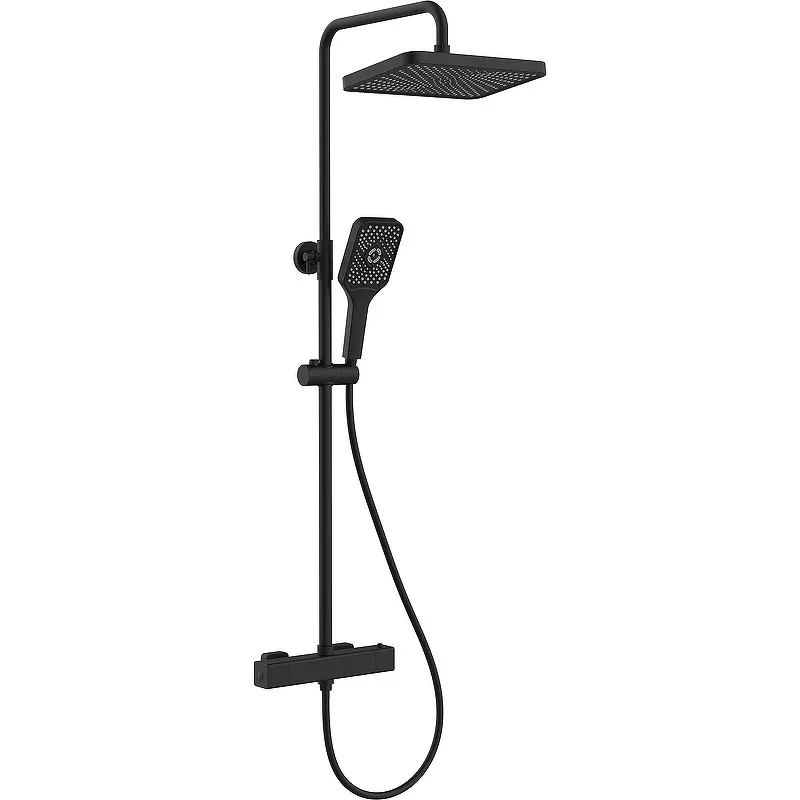 Душевая система beWash BV1TMSS6121 с термостатом.Характеристики: Цвет: черный матовый. Материал: латунь. Антиизвестковое покрытие. Управление: термостат. Механизм: термостатический картридж. Легкое очищение от налета. Антибактериальная защита. Регулировка напора. Девиатор. Система против известковых отложений. Защита шланга от перекручивания. Исполнение шланга: пластиковый. Душевая штанга регулируется по высоте: 830-1190 мм. Размер верхнего душа: 300х200 мм. Материал лейки: пластик. Стандарт подводки: 1/2. Количество монтажных отверстий: 3. Монтаж: настенный. В комплекте поставки: Смеситель. Душевая штанга. Верхний (тропический) душ. Шланг душевой. Лейка душевая. Держатель душевой лейки.