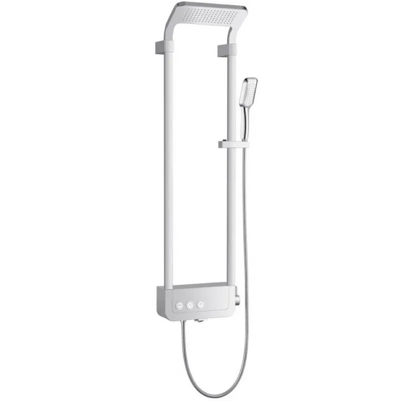 Технические характеристики: Цвет: звездный хром. Габариты: 1300 х 405 х 230 мм. Монтаж: настенный. Материал корпуса: нержавеющая сталь SUS304. Функции левого переключателя: верхний душ, ручной душ и поворотный излив. Функции правого переключателя: включение/выключение, горячий/холодный, контроль потока воды. Верхний душ: угол наклона 45 градусов, подходит для сверхнизкого давления воды. Материал верхнего душа: ABS. Ручной душ: одна функция. Материал ручного душа: ABS. Держатель для душа: регулируемый. Материал держателя: ABS. Длина шланга: 150 см, двойная блокировка. В комплекте поставки: Корпус. Верхний душ. Ручной душ. Держатель для душа. Душевой шланг.