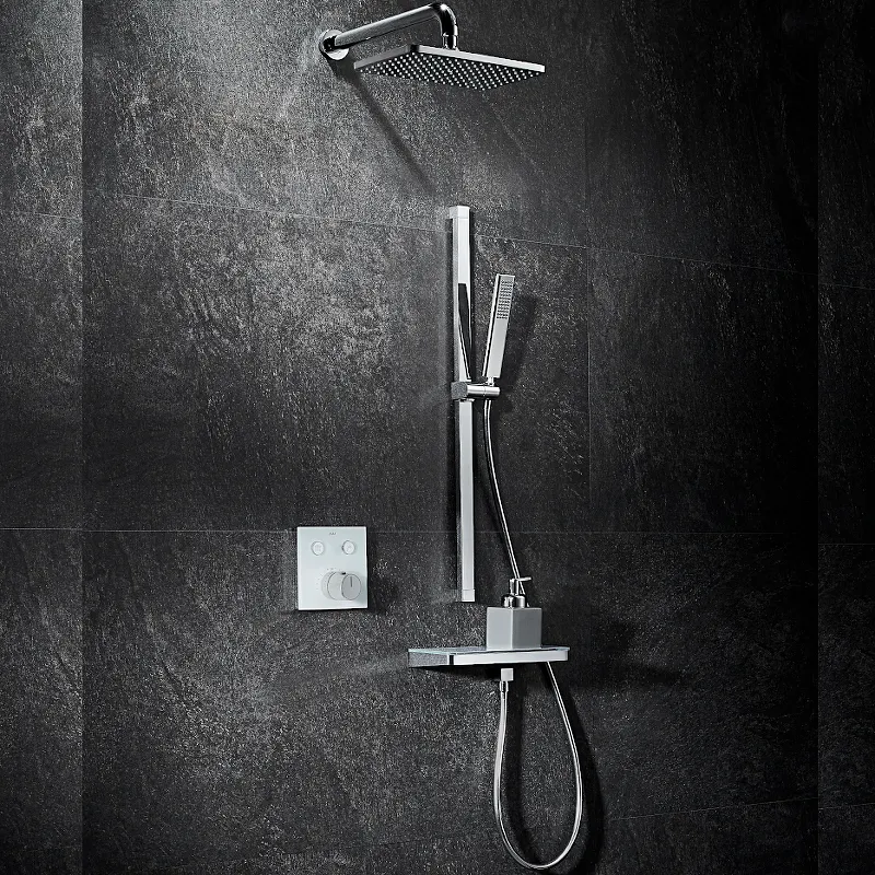 Душевая система Black&White Universe U7766 7766U с термостатом.Характеристики: Цвет: хром. Материал: латунь EN 59-1, белое закаленное стекло. Управление: термостат. Механизм: термостатический картридж CITEC. Стандарт подводки: 3/4. Переключение функций: кнопочное. Материал верхнего и ручного душа: латунь. Размер верхнего душа (ШхД): 300х190 мм. Форма верхнего душа: прямоугольная. Длина кронштейна: 415 мм. Выход для ручного душа: 1/2. Количество режимов струи ручного душа: 1. Длина душевого шланга: 1500 мм. Форма ручного душа: прямоугольная. Материал душевой штанги: нержавеющая сталь. Размер душевой штанги (ШхВхД): 30х787х18 мм. Размер полки для душевых принадлежностей (ШхВхД): 300х35х135 мм. Монтаж: встраиваемый. В комплекте поставки: Смеситель (внешняя и внутренняя часть). Верхний душ. Ручной душ. Шланг для ручного душа. Кронштейн верхнего душа. Душевая штанга. Держатель ручного душа. Полка.