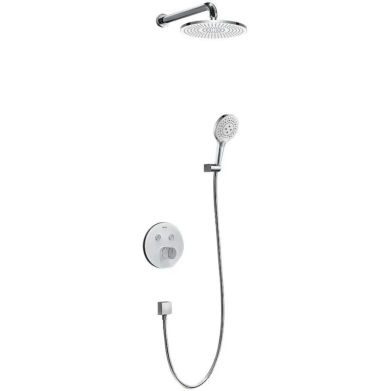 Душевая система Black&White Universe U7776 7776U с термостатом.Характеристики: Цвет: хром. Материал: латунь EN 59-1, белое закаленное стекло. Управление: термостат. Механизм: Cold Start картридж CITEC. Стандарт подводки: 3/4. Переключение функций: кнопочное. Материал верхнего и ручного душа: ABS-пластик. Диаметр верхнего душа: 250 мм. Форма верхнего душа: круглая. Длина кронштейна: 415 мм. Выход для ручного душа: 1/2. Количество режимов струи ручного душа: 3. Длина душевого шланга: 1500 мм. Форма ручного душа: круглая. Монтаж: встраиваемый. В комплекте поставки: Смеситель (внешняя и внутренняя часть). Верхний душ. Ручной душ. Шланг для ручного душа. Шланговое подключение. Кронштейн верхнего душа. Держатель ручного душа.