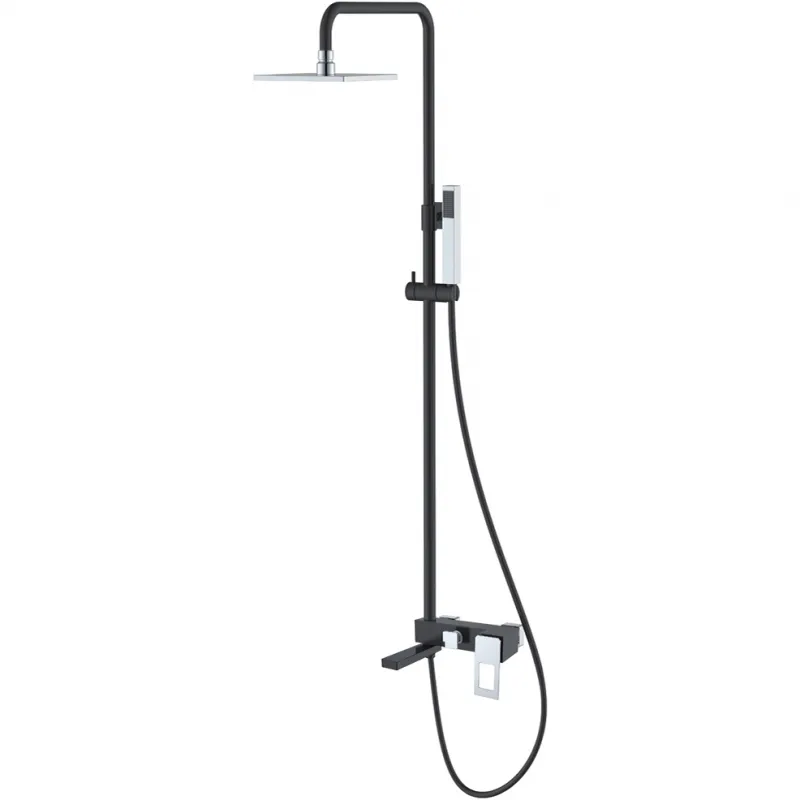 Душевая система Boheme Q 148-BCR.Характеристики:Цвет: черный, хром.Материал: латунь.Регулируемая высота душевой стойки.Верхний душ прямоугольной формы.Ручной душ с держателем на стойке.Однорычажное переключение.Монтаж: на стену.Стандарт подключения: G 1/2.В комплекте поставкисмеситель; верхний душ; ручной душ; душевая штанга; душевой шланг; гибкая подводка G1/2; крепежный комплект.