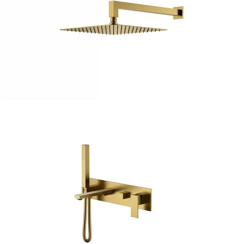 Душевая система Boheme Qubic 474-BR.Характеристики: Цвет: бронза. Материал: латунь. Покрытие: PVD и высочайший уровень полировки. Управление: однорычажное. Механизм: керамический картридж Sedal. Излив: фиксированный. Аэратор Neoperl Cascade. Длина душевого шланга: 150 см. Верхний и ручной душ с функцией легкое очищение от известкового налета. Стандарт подводки: 1/2. Форма верхнего душа: квадратная. Размер верхнего душа (ШхД): 300х300 мм. Форма ручного душа: прямоугольная. Количество режимов струи ручного душа: 1. Отверстия для монтажа: 2. Монтаж: встраиваемый. В комплекте поставки: Смеситель (внешняя и внутренняя часть). Кронштейн для верхнего душа. Верхний душ. Ручная лейка. Душевой шланг. Комплект креплений.