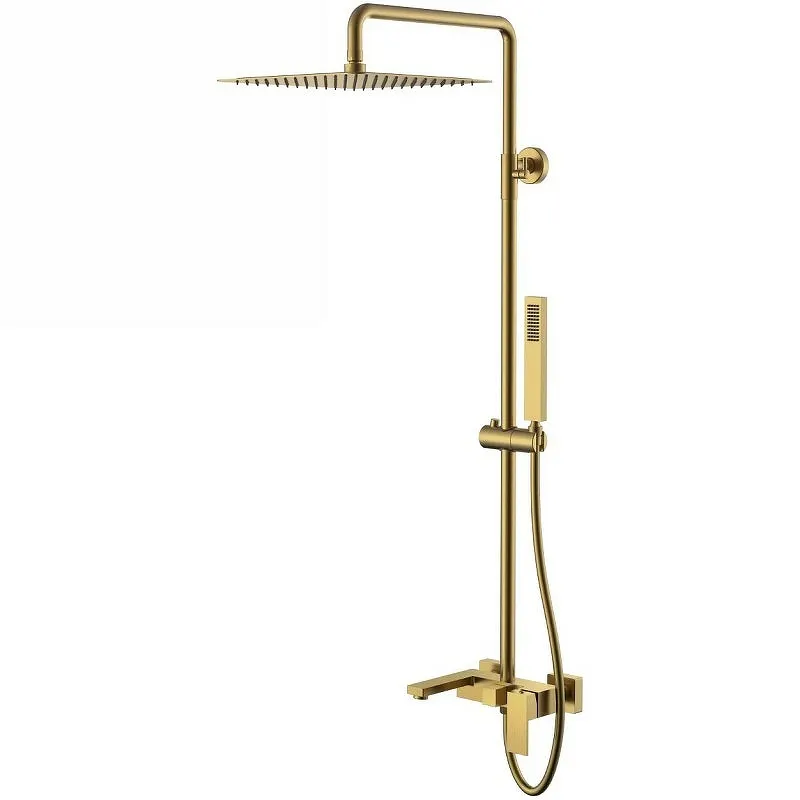 Душевая система Boheme Qubic 478-BR.Характеристики: Цвет: бронза. Материал: латунь. Покрытие: PVD и высочайший уровень полировки. Управление: однорычажное. Механизм: керамический картридж Sedal. Излив: фиксированный. Аэратор Neoperl Cascade. Девиатор. Душевая штанга регулируется по высоте: 920-1320 мм. Держатель ручного душа регулируемый по высоте. Длина душевого шланга: 150 см. Верхний и ручной душ с функцией легкое очищение от известкового налета. Стандарт подводки: 1/2. Форма верхнего душа: квадратная. Размер верхнего душа (ШхД): 300х300 мм. Форма ручного душа: прямоугольная. Количество режимов струи ручного душа: 1. Отверстия для монтажа: 3. Монтаж: на стену. В комплекте поставки: Смеситель с изливом. Душевая штанга. Верхний душ. Ручная лейка. Душевой шланг. Комплект креплений.