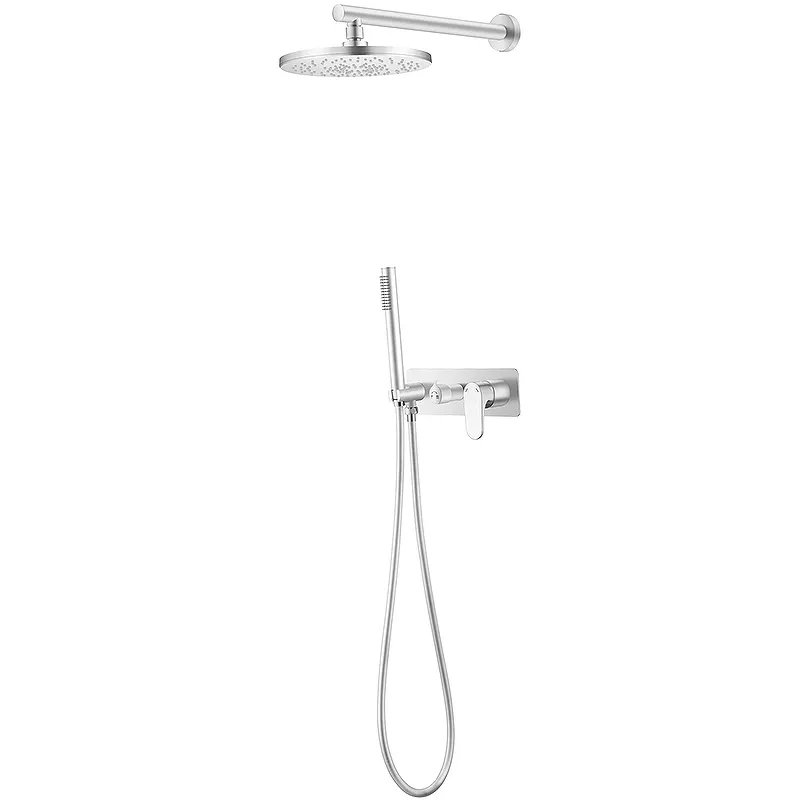 Душевая система Boheme Spectre 454-MW.Характеристики: Цвет: белый матовый. Материал: латунь. Тип смесителя: однорычажный. Механизм: керамический картридж. Форма верхнего душа: круглая. Размер верхнего душа: 225 мм. Форма ручного душа: прямоугольная. Монтаж: встраиваемый. В комплекте поставки: Смеситель (внешняя и внутренняя части). Верхний душ. Ручной душ. Шланг для ручного душа. Держатель настенный.
