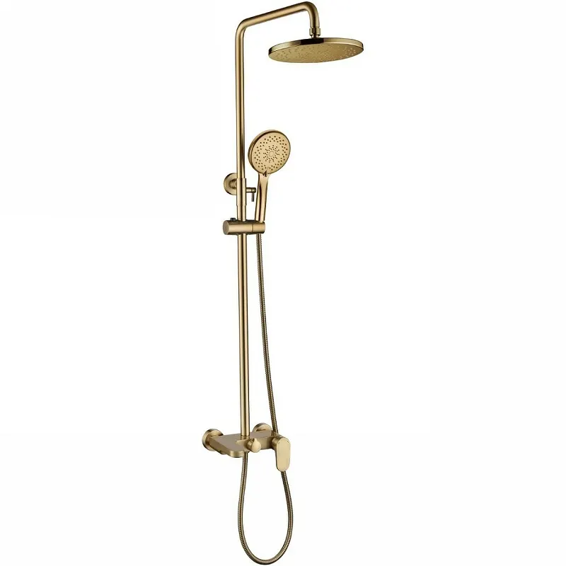 Душевая система Boheme Spectre 458-BR.Характеристики: Цвет: бронза. Материал: латунь. Управление: однорычажное. Механизм: керамический картридж. Излив: фиксированный. Регулируемая по высоте телескопическая штанга: 1000-1400 мм. Форма верхнего душа: круглая. Форма ручного душа: круглая. Диаметр верхнего душа: 250 мм. Количество режимов струи ручного душа: 5. Регулируемый по высоте держатель ручного душа. Длина душевого шланга: 1500 мм. Шланг в двойной оплетке. Стандарт подводки: G 1/2. Монтаж: на стену. В комплекте поставки: Смеситель. Излив. Верхний душ. Ручной душ. Душевой шланг. Душевая штанга. Комплект креплений.