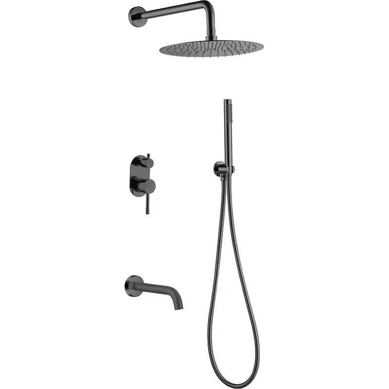 Душевая система Boheme Uno 464-2-SGM.Характеристики: Цвет: оружейная сталь глянцевая. Материал: латунь. Покрытие: глянцевое. Управление: рычажное. Механизм: керамический картридж. Стандарт подводки: 1/2. Размер верхнего душа: 300 мм. Количество режимов струи ручного душа: 1. Монтаж: встраиваемый. Переключатель потоков. В комплекте поставки: Смеситель (внутренняя и внешняя части). Верхний душ. Кронштейн для верхнего душа. Ручной душ. Душевой шланг. Держатель ручного душа.