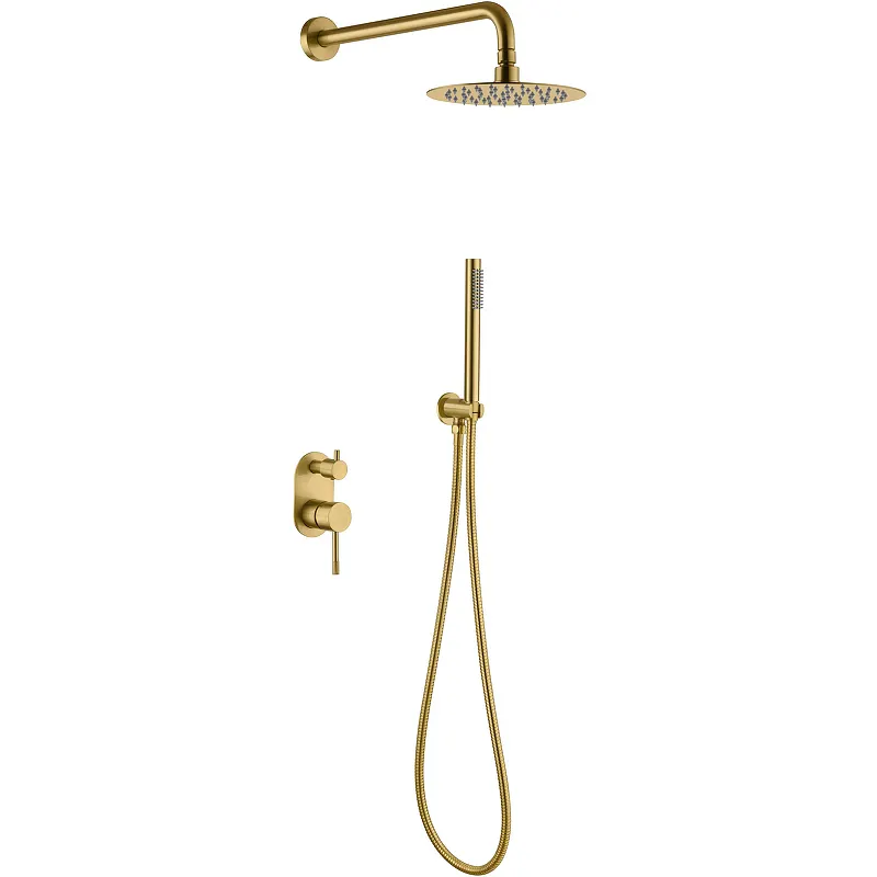Душевая система Boheme Uno 464-MG.Характеристики: Цвет: золото матовое. Материал: латунь. Управление: однорычажное. Механизм: керамический картридж. Стандарт подводки: 1/2. Размер верхнего душа: 200 мм. Количество режимов струи ручного душа: 1. Монтаж: встраиваемый. Переключатель потоков. В комплекте поставки: Смеситель (внутренняя и внешняя части). Верхний душ. Кронштейн для верхнего душа. Ручной душ. Душевой шланг.