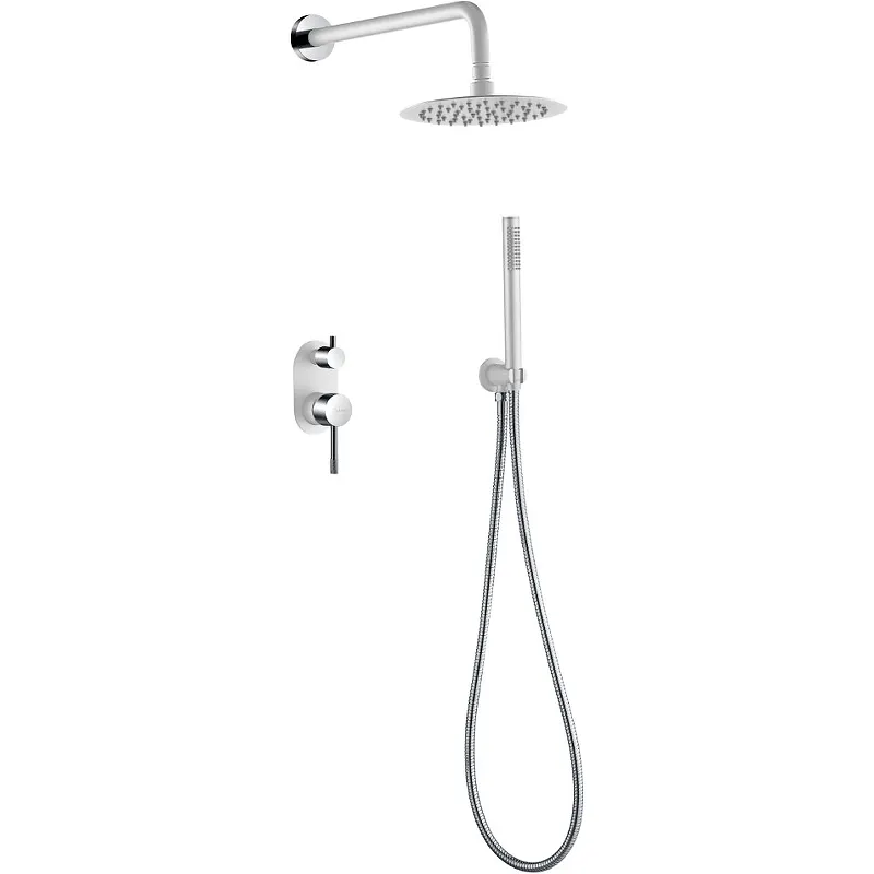 Душевая система Boheme Uno 464-WCR.Идеальный вариант для интерьера в современном стиле благодаря высокому качеству и превосходному дизайну.Характеристики: Материал: латунь. Цвет: белый, хром. Покрытие: матовое. Управление: рычажное. Девиатор. Стандарт подводки: 1/2. Механизм: керамический картридж. Монтаж: встраиваемый. В комплекте поставки: Смеситель встроенный. Настенный держатель. Верхний душ. Ручной душ.