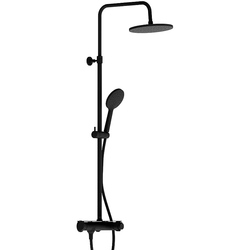 Душевая система Damixa Jupiter 977750300 с термостатом.Характеристики: Цвет: черный матовый. Материал: латунь, пластик. Покрытие: PVD. Управление: термостат. Механизм: термостатический картридж 35 мм. Стандарт подводки: G 1/2. Тип подводки: жесткая. Тип переключателя: механический. Диаметр верхнего душа: 225 мм. Диаметр ручного душа: 120 мм. Количество режимов струи ручного душа: 1 (Spray). Монолитный душевой шланг длиной 1500 мм. Защита от перекручивания Twistless. Высота душевой штанги: 1050-1450 мм. Функция очистки резиновых форсунок RubClean. Совместимость с проточным электронагревателем. Обратные клапаны. Стопор безопасности на 38 градусов. Количество монтажных отверстий: 3. Монтаж: на стену. В комплекте поставки: Смеситель. Душевая штанга. Верхний душ. Ручной душ. Держатель ручного душа. Душевой шланг. Верхний установочный крепеж 1 шт. Декоративные розетки 2 шт. Эксцентрики 2 шт. Комплект креплений. Инструкция.