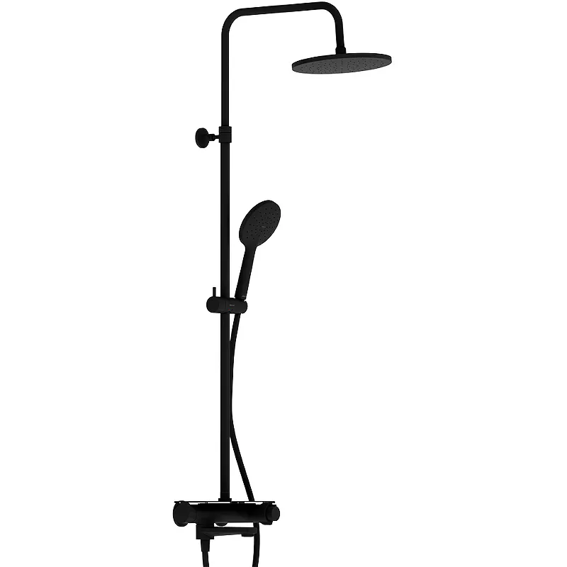 Душевая система Damixa Jupiter 977760300 с термостатом.Характеристики: Цвет: черный матовый. Материал: латунь, пластик. Управление: термостат. Механизм: термостатический картридж 35 мм. Излив: поворотный. Аэратор. Стандарт подводки: G 1/2. Тип подводки: жесткая. Тип переключателя: механический/переключение поворотом излива. Диаметр верхнего душа: 225 мм. Диаметр ручного душа: 120 мм. Количество режимов струи ручного душа: 1 (Spray). Монолитный душевой шланг длиной 1500 мм. Защита от перекручивания Twistless. Высота душевой штанги: 1050-1450 мм. Функция очистки резиновых форсунок RubClean. Совместимость с проточным электронагревателем. Обратные клапаны. Стопор безопасности на 38 градусов. Количество монтажных отверстий: 3. Монтаж: на стену. В комплекте поставки: Смеситель. Душевая штанга. Верхний душ. Ручной душ. Держатель ручного душа. Душевой шланг. Верхний установочный крепеж 1 шт. Декоративные розетки 2 шт. Эксцентрики 2 шт. Комплект креплений. Инструкция.