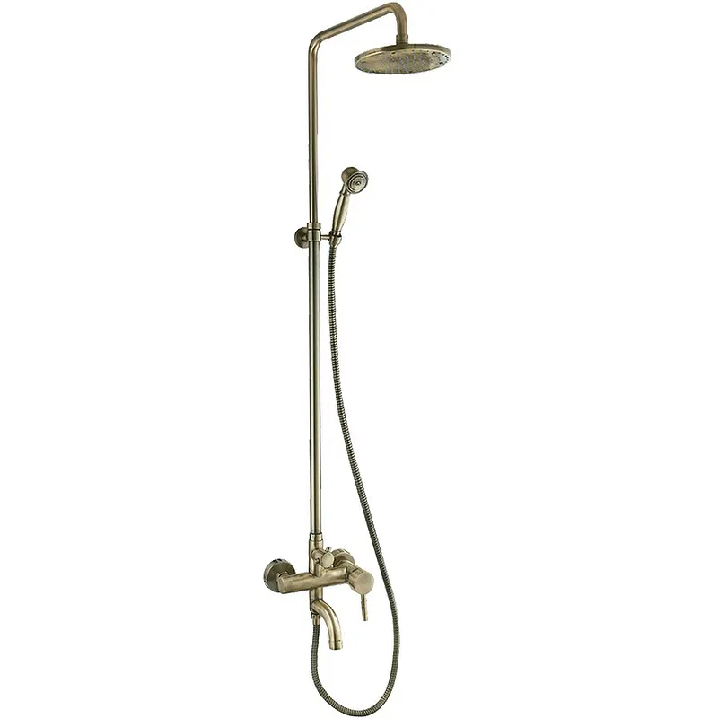 Душевая система Frap F2410 Бронза — это изысканное решение для вашей ванной комнаты в стиле ретро. Система изготовлена из высококачественной латуни, что гарантирует долговечность и надежность. Однорычажное управление обеспечивает удобство использования, а бронзовый цвет придает изделию шикарный вид. Установите данную душевую систему на стену, и она станет настоящим украшением интерьера.