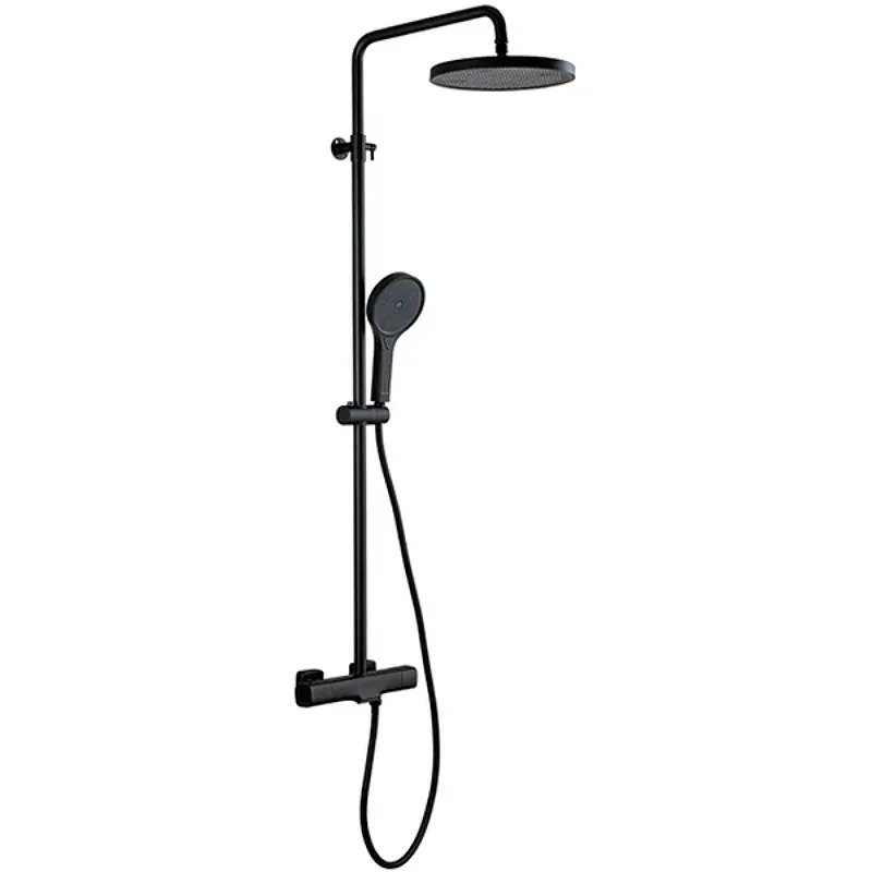 Душевая система Gappo G2495-76 с термостатом.Характеристики: Цвет: черный матовый. Материал: латунь. Управление: термостат. Излив: фиксированный, каскадный. Механизм: термостатический картридж. Температура: рабочая 38, максимальная 49. Диаметр верхнего душа: 260 мм. Количество режимов струи ручного душа: 3. Длина шланга: 1500 мм. Монтаж: на стену. В комплекте поставки: Смеситель. Верхний душ. Душевая штанга. Ручной душ. Душевой шланг. Держатель ручного душа.