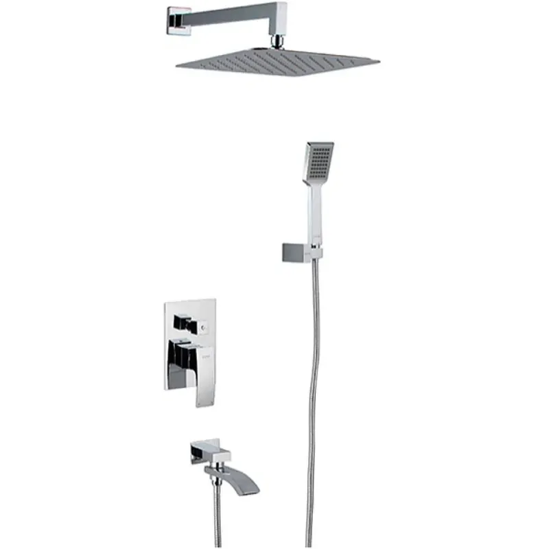 - Квадратная форма верхнего и ручного душа добавляет современный стиль в дизайн вашей ванной комнаты.