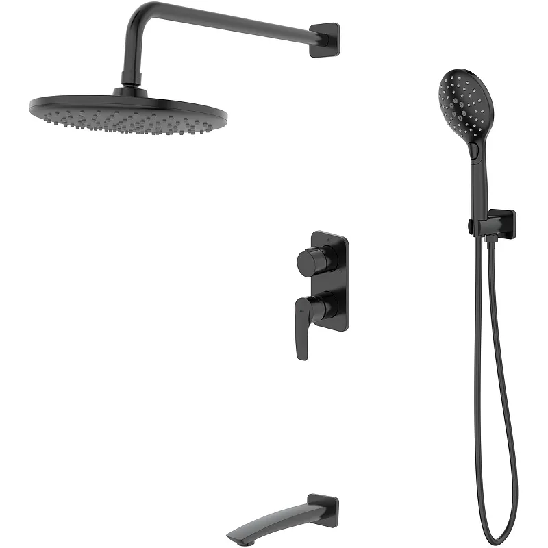 - Высококачественная душевая система: Изготовлена из латуни с черным матовым покрытием, что гарантирует долговечность и стильный внешний вид.