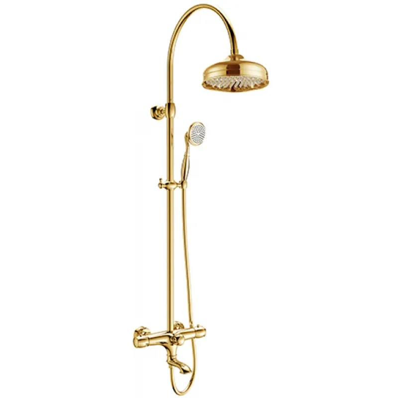 Душевая система с термостатом Kaiser Aria 03182-3 имеет минималистичный дизайн и продуманную эргономику, который гармонично впишется в интерьер любой ванной комнаты. Продуманная конструкция, встроенный керамический картридж и хромированный корпус дает гарантию, что сантехника не утратит ни внешней привлекательности, ни своих функциональных качеств даже спустя длительное время.Характеристики: Цвет: золото Материал: Пластик, латунь Тип подводки: Жесткая Режимов на лейке: 1-режимная В комплект поставки входит: Душевая лейка Душевая штанга Держатель для душевой лейки Душевой шланг Кронштейн Верхний душ Смеситель Эксцентрики Гарантийный талон Инструкция по установке и эксплуатации