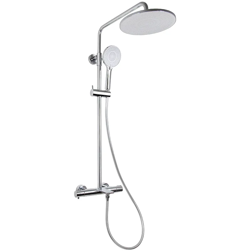 Душевая система Kaiser Serio 05382 с термостатом.Характеристики: Цвет: хром. Материал: латунь. Управление: термостат. Механизм: термостатический картридж. Излив:фиксированный. Стандарт подводки: 1/2. Тип подводки: жесткая. Диаметр верхнего душа: 250 мм. Диаметр ручного душа: 120 мм. Количество режимов струи ручного душа: 3. Длина душевого шланга: 1500 мм. Регулируемая душевая штанга: 853-1405 мм. Монтаж: на стену. В комплекте поставки: Душевая система. Термостат. Верхний душ. Ручной душ. Душевой шланг. Душевая штанга. Держатель ручного душа. Комплект креплений.