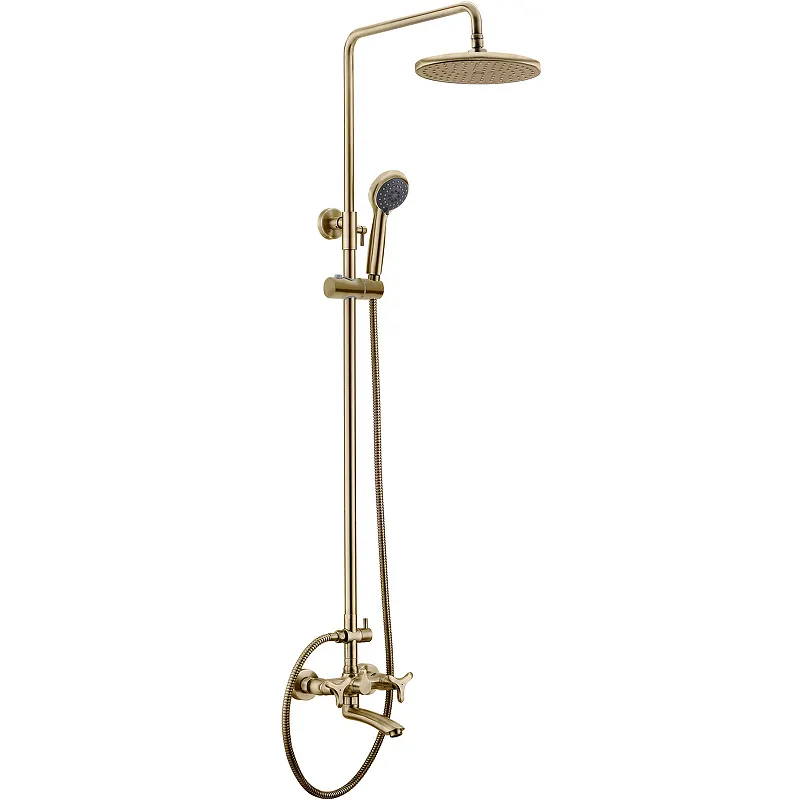 Душевая система Kaiser Trio 57188Br имеет минималистичный дизайн и продуманную эргономику, который гармонично впишется в интерьер любой ванной комнаты. Продуманная конструкция, встроенный керамический картридж и хромированный корпус дает гарантию, что сантехника не утратит ни внешней привлекательности, ни своих функциональных качеств даже спустя длительное время.Характеристики: Цвет: Бронза Материал: Латунь Тип подводки: Жесткая Режимов на лейке: 1-режимная В комплект поставки входит: Душевая лейка Душевая штанга Держатель для душевой лейки Душевой шланг Кронштейн Верхний душ Смеситель Эксцентрики Гарантийный талон Инструкция по установке и эксплуатации