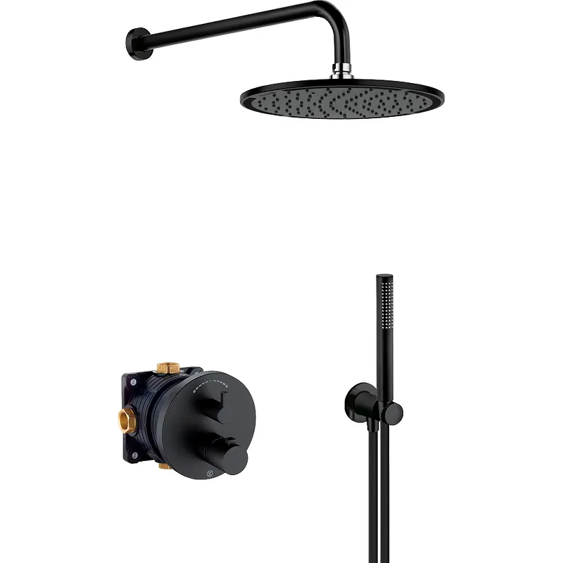 - Эстетичный дизайн в современном стиле: Черная матовая душевая система станет эффектным акцентом в вашей ванной комнате.