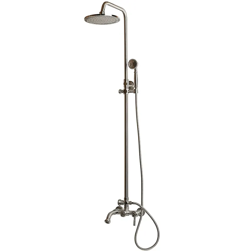 Душевая система Milacio Vitoria MC.101.SL Серебро — это идеальное решение для создания стильного интерьера в ванной комнате. Изготовленная из высококачественной латуни, данная душевая система устойчива к механическим повреждениям и обеспечивает долговечность использования. Ее глянцевая поверхность в серебряном цвете гармонично дополняет ретро-стиль вашего пространства. Душевая система легко монтируется на стену, что существенно облегчает установку.