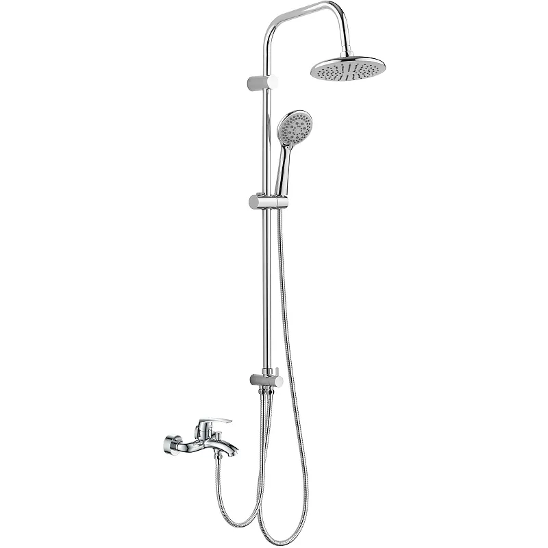 Душевая система Orange Alfi M18-933cr с однорычажным смесителем. Представляет собой гармоничное и практичное решение для современной душевой комнаты. Состоит из высокой стойки с верхним душем. Направление воды происходит посредством поворота ручки дивертора. Предусмотрены два направления для верхнего и ручного душа. Лейка ручного душа также имеет один режим работы. Ручной душ имеет держатель, регулируемый по высоте. Смеситель оснащен керамическим картриджем, который значительно продляет срок его службы препятствуя отложению накипи и извести.Основные характеристики:Цвет: хром.Материал: латунь.Монтаж: на стену.Тип подводки: гибкая G 1/2.Управление: один рычаг.Механизм: керамический картридж.Штанга: 970 мм.Ручной душ: 120 мм.Верхний душ: 188 мм.В комплекте поставки:Штанга;Держатель;Шланг;Ручной душ;Верхний душ;Крепежные винты для настенного монтажа;Инструкция.