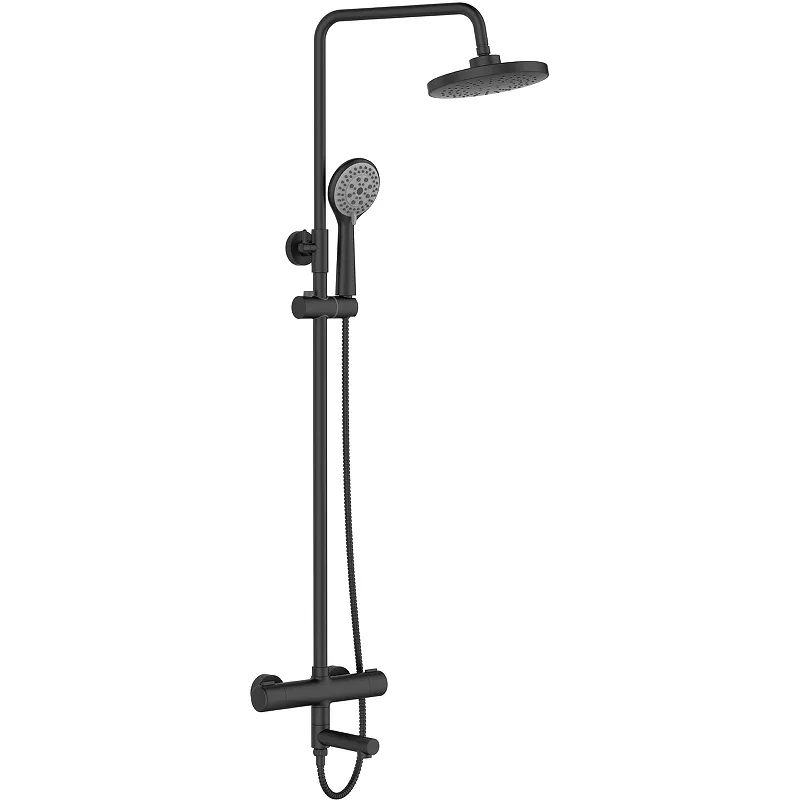 Душевая система Orange T02S3-911b c термостатом выполнена в современном стиле и отлично впишется в интерьер любой ванной комнаты.Характеристики:Цвет: черный.С термостатическим смесителем.С поворотным изливом.Телескопическая штанга.Двухрежимный верхний душ с регулируемым углом наклона и силиконовыми форсунками.Диаметр верхнего душа: 200 мм.Душевой шланг в металлической оплетке.Длина шланга: 1500 мм.В комплекте поставки: душевая штанга, термостатический смеситель, верхний душ, ручная лейка, душевой шланг.