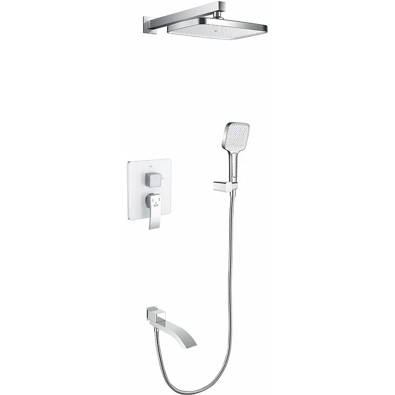 - Современный дизайн душевой системы: стильное сочетание белого и хрома идеально впишется в любой интерьер.
